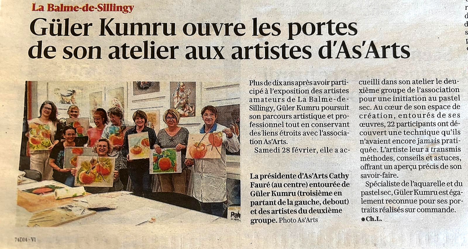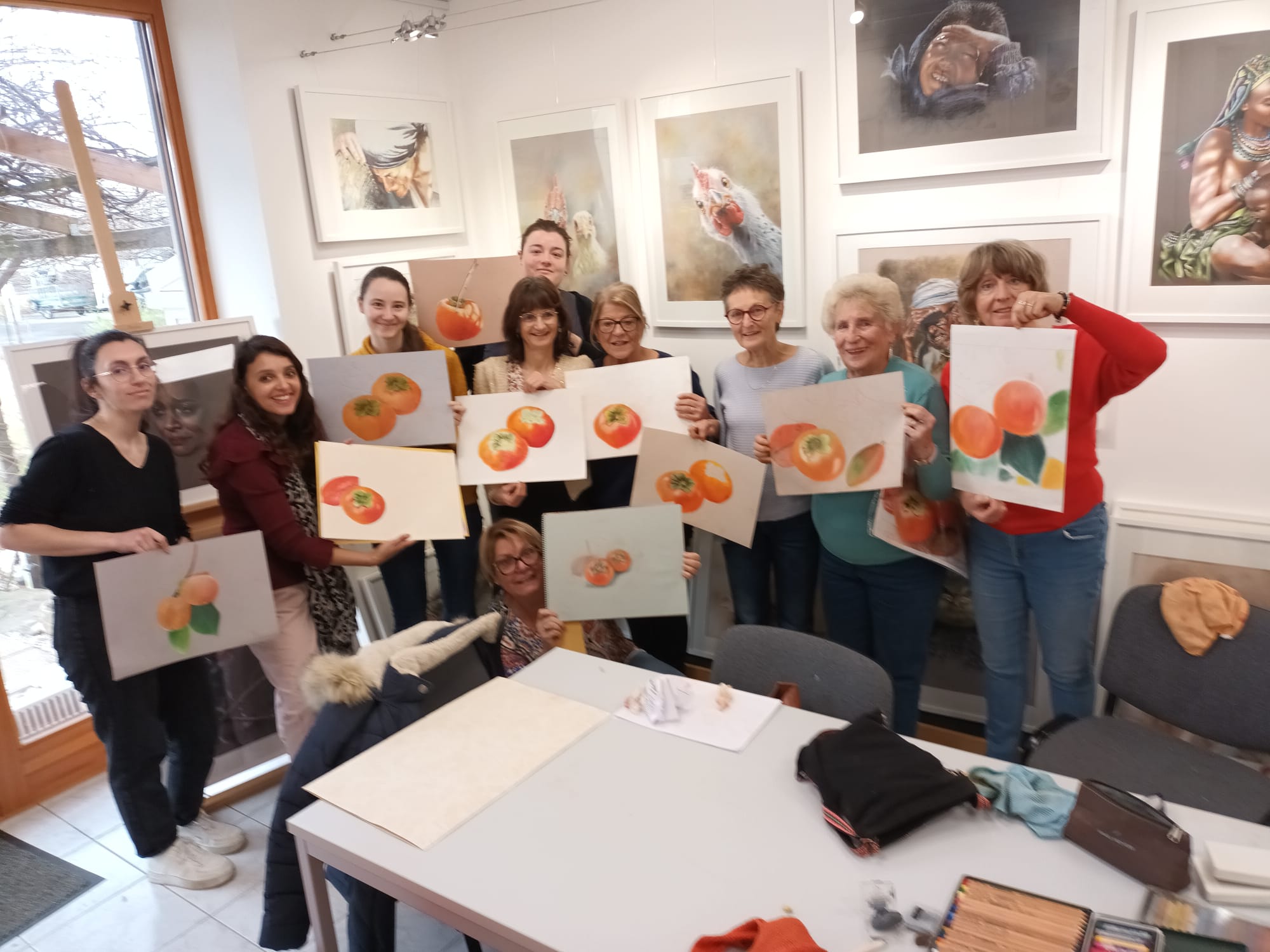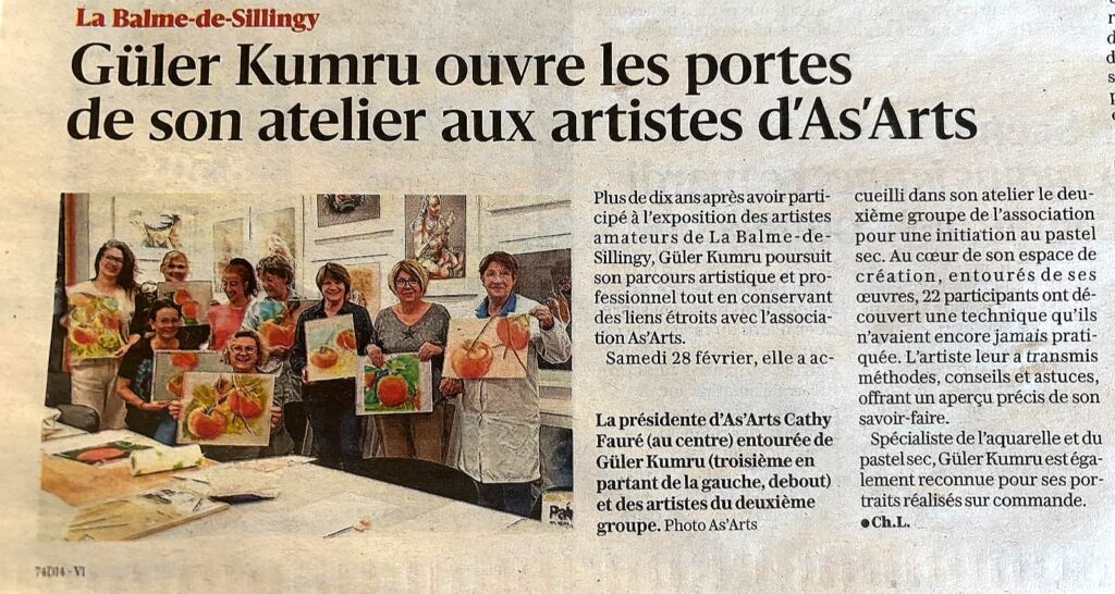 Les membres de l’association As’Arts ont eu l’opportunité de passer une demi journée aux côtés de la talentueuse artiste peintre Güler KUMRU pour apprendre le pastel. Cet opportunité ayant un attiré un grand nombre d’artistes de l’association, deux matinées de stage ont été programmées : le 21 et le 29 février.